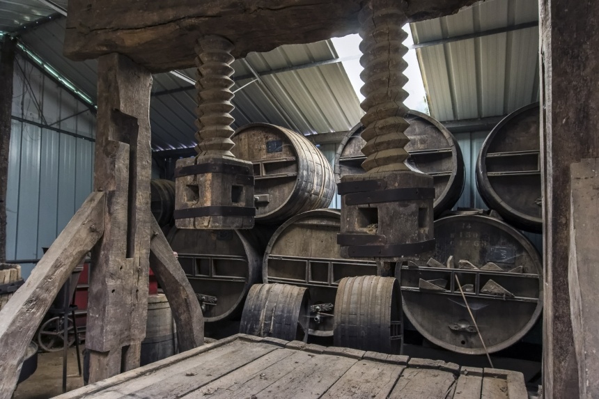 On y trouve tour à tour les ateliers du bourrelier, du sabotier, du tonnelier, les foudres de chêne…